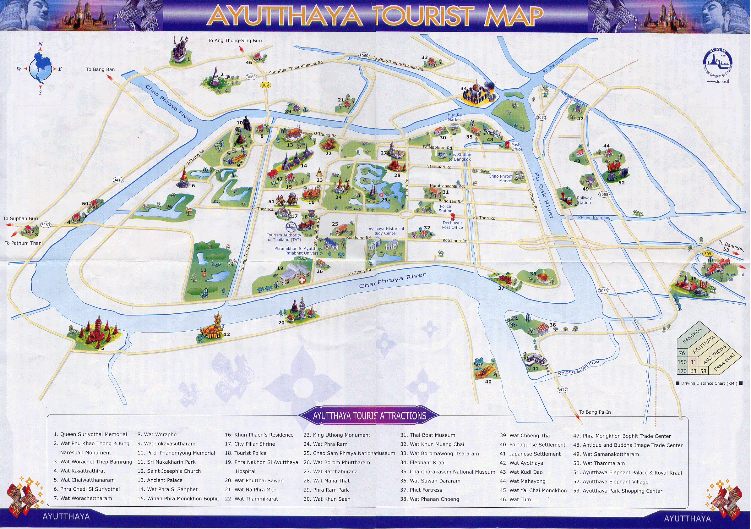 태국은 지도 서비스가 아주 잘 되는 곳입니다. 일단 시내 지도는 돈무앙 공항 나오시면서 살펴보시면 꼽혀 있구요, 없다면 입국장에 있는 관광안내 부스에서 구할 수 있습니다. 카오산에서 국립박물관 가는 길의 정부 관광청에서는 필요한 지도 모든 것을 구할 수 있지요.