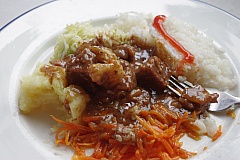 12시 경에 길가 식당에서 양고기, 밥, 양배추, 당근을 곁들인 점심을 먹었다. 샘들이 고기를 잘 안 드시고 심샘은 특히 비위에 맞지 않는다고 많이 남기셔서 우리가 먹었다. 신선해서 깔끔하고 담백한 맛의 고기다. 남편은 여행 내내 먹어 볼 수 있는 최상의 고기라고 좋아했다. 초원에서 풀을 뜯고 자유롭게 자란 제대로 된 녀석들이다.