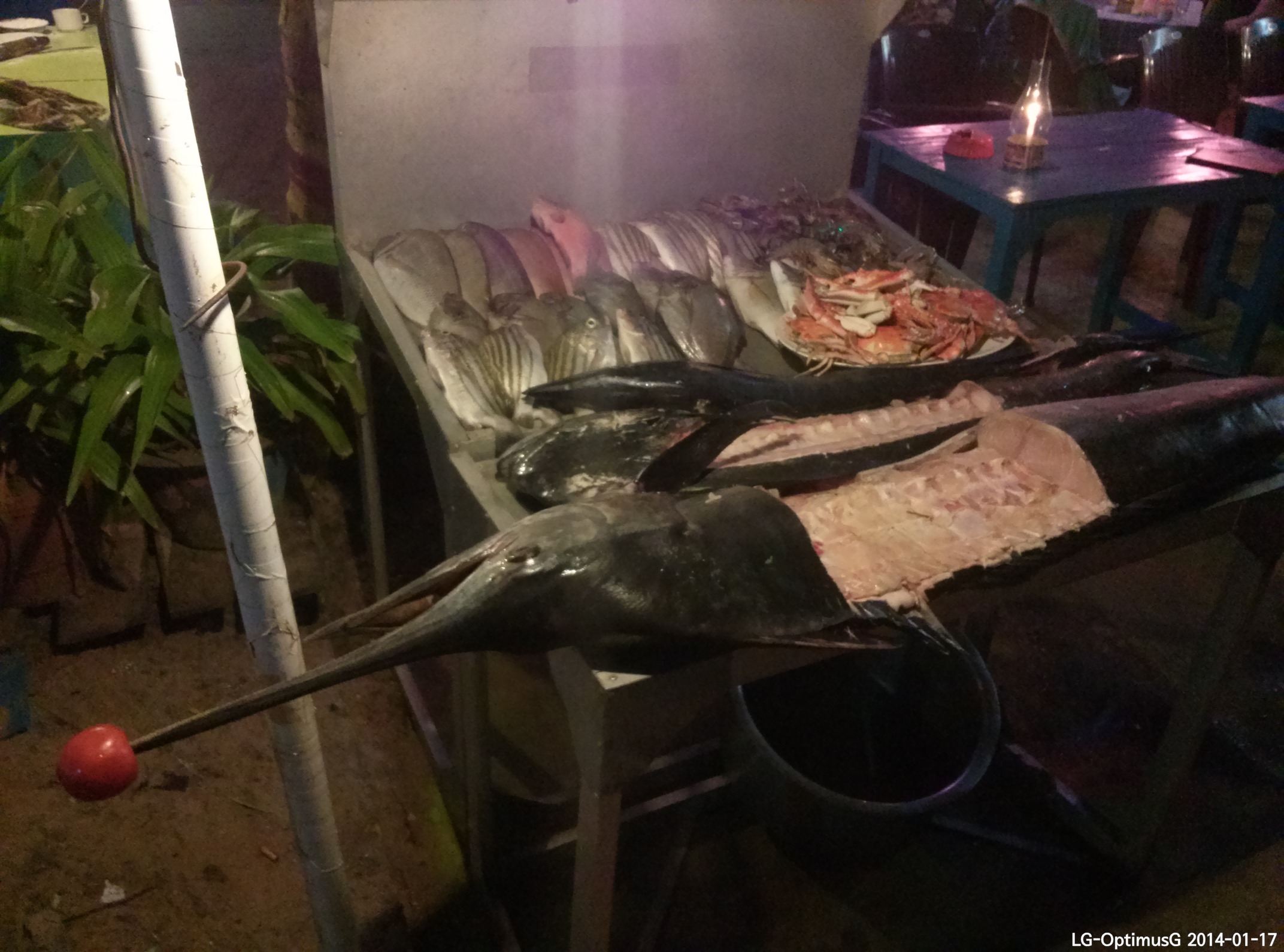 청새치가 너무 뾰족하여 지혜롭게도 토마토를 꽂음